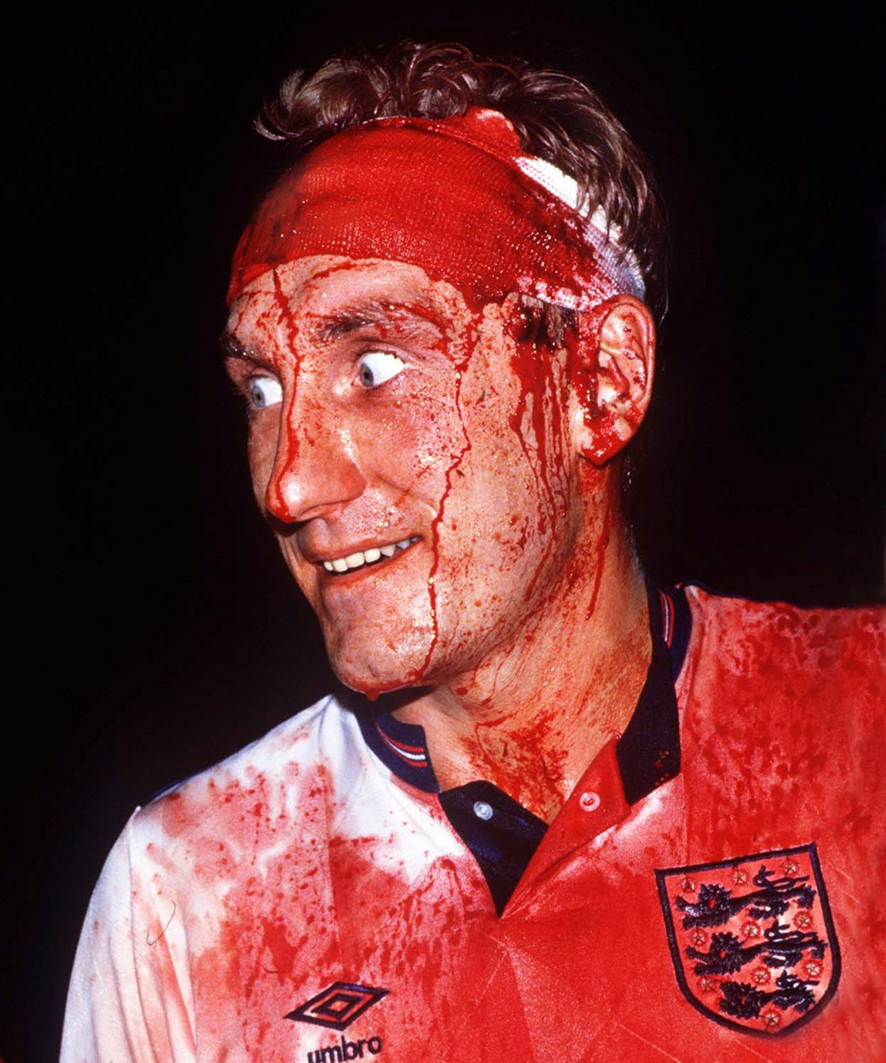 Один из главных спортивных снимков XX века — фотография окровавленного футболиста сборной Англии Терри Бутчера, сделанная во время матча против Швеции в 1989 году.