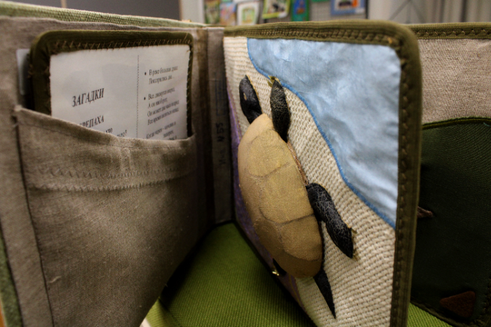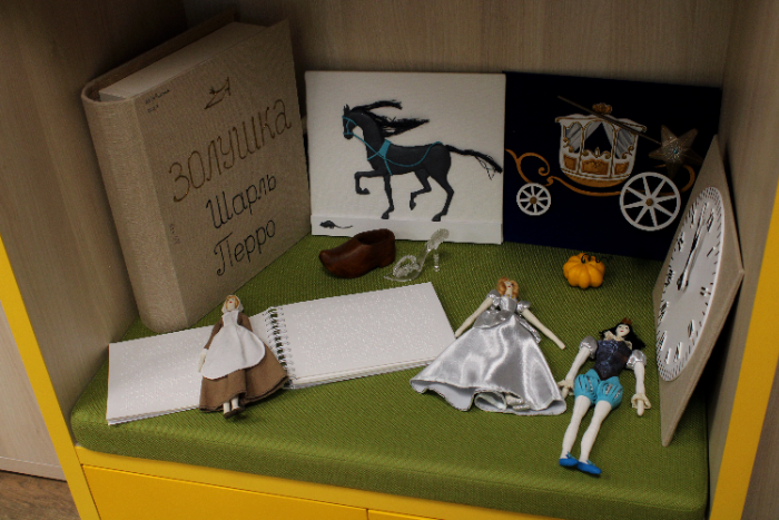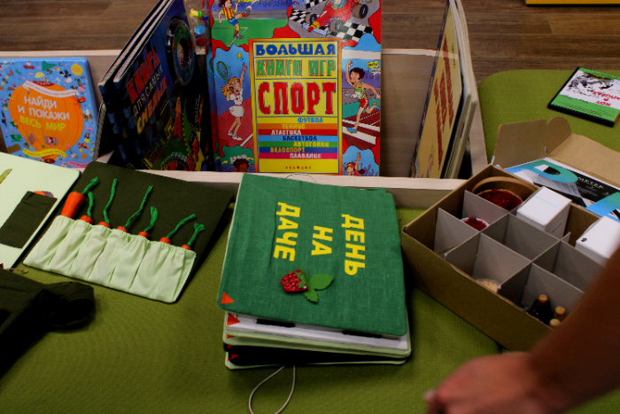 В детском отделе представлены книги и предметы, которые помогают познавать мир с помощью касаний и запахов.