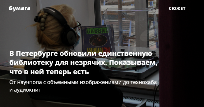 В Петроградском районе завершила двухлетний капитальный ремонт единственная в Петербурге и Ленобласти библиотека для незрячих и слабовидящих людей «Точки зрения». Теперь там есть коворкинг, технохаб с 3D-объектами, специализированные, детские и научно-популярные книги, а также копии городских памятников в миниатюре.