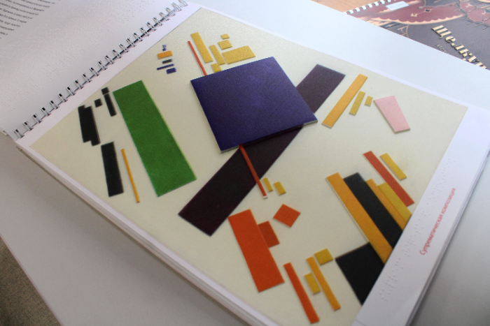 В залах научно-популярной литературы представлены работы по истории, психологии и искусству. В книгах — объемные изображения. Разницу цветов можно физически прочувствовать пальцем благодаря отличающейся фактуре.
