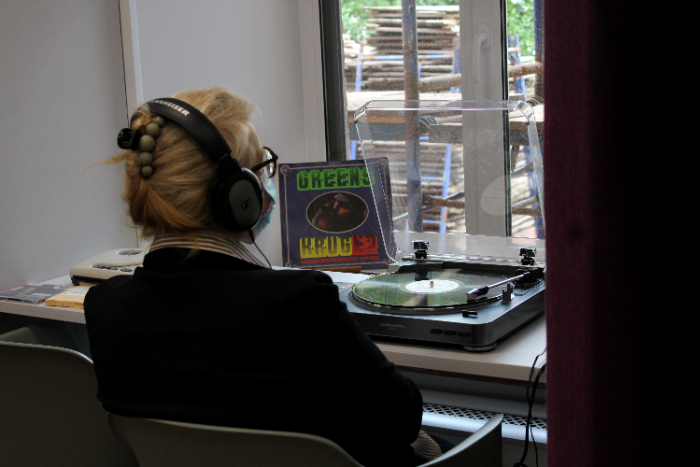 Аудиозал — пространство с аудиокнигами и синтезатором, на котором можно играть. В целях защиты авторских прав аудиокниги записаны так, чтобы прослушать их можно было только на специальном устройстве, которое находится в библиотеке.