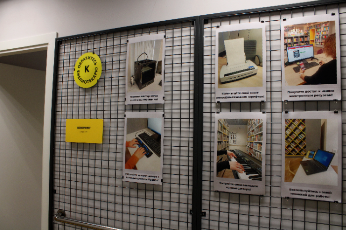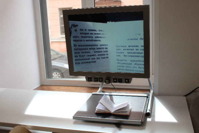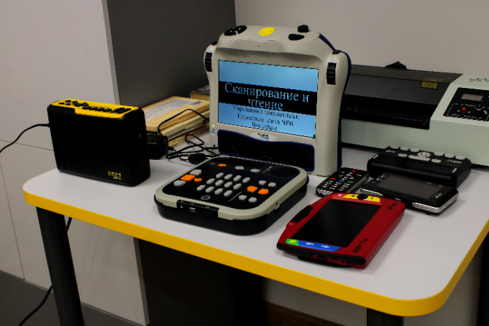 Ключевое обновление библиотеки — это новый технохаб. Здесь есть компьютеры и оборудование, необходимое для незрячих и слабовидящих людей: электронные увеличители размера шрифта книги, позволяющие также менять отображаемый спектр цвета, специальный экран для чтения текста с компьютера при помощи пальца, принтер для печати текста шрифтом Брайля и создания 3D-моделей.