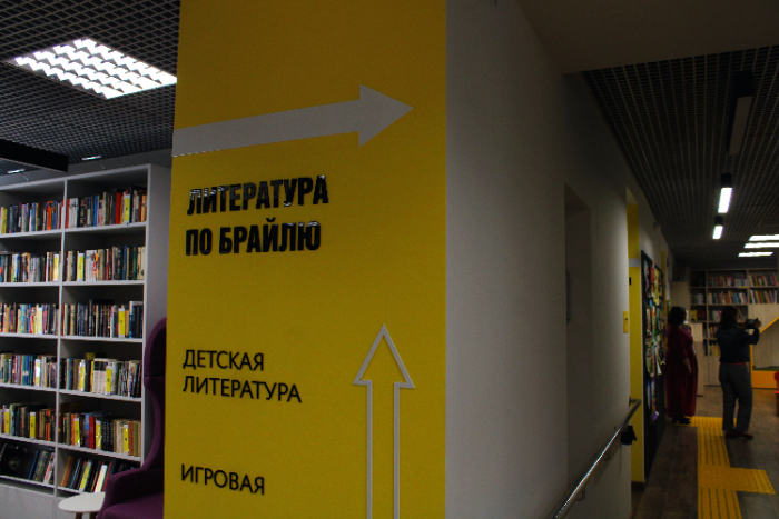Особенность нового пространства — шрифт Брайля на всех опознавательных знаках и места для безопасного чтения и работы.