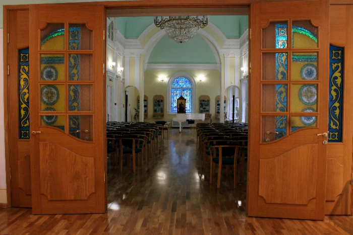 На втором этаже находится музей и большой конференц-зал, который раньше был помещением церкви. Витражи в зале восстановлены на основе исторических изображений. Большая икона была найдена в стене здания во время ремонта.