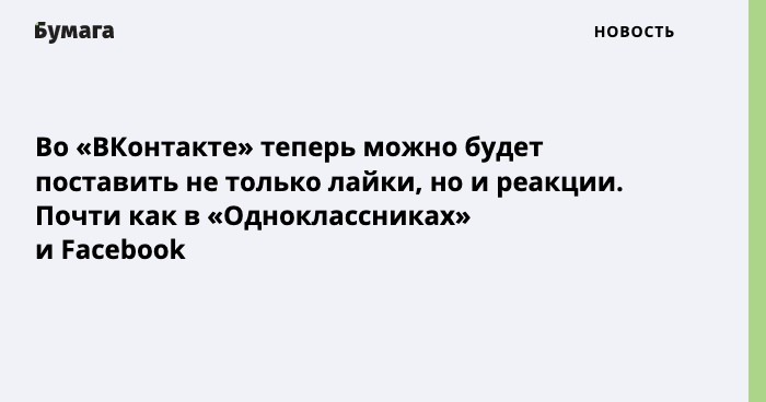Во «ВКонтакте» теперь можно будет поставить не только лайки, но и реакции
