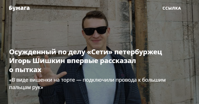 Петербуржец Игорь Шишкин, недавно освободившийся из колонии, где провел 3,5 года, дал большое интервью «Медиазоне». Он впервые рассказал о пытках после задержания по делу «Сети» — организации, признанной властями террористической и запрещенной в России.