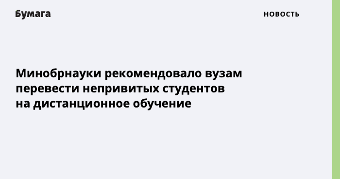 Министерство образования и науки рекомендовало вузам перевести студентов, не прошедших вакцинацию от коронавируса и не имеющих медотвод, на дистанционное обучение. Об этом сообщает ТАСС со ссылкой на рекомендации ведомства.