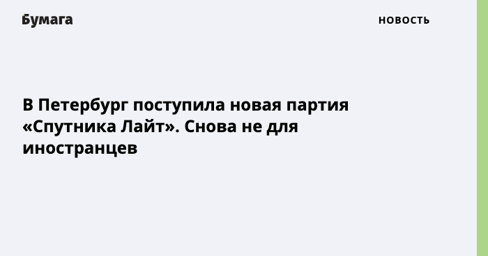 Как сообщили «Бумаге» в пресс-службе комитета по здравоохранению 9 августа, новая партия также не предназначается для иностранцев. Дата начала кампании по вакцинации иностранцев пока неизвестна.