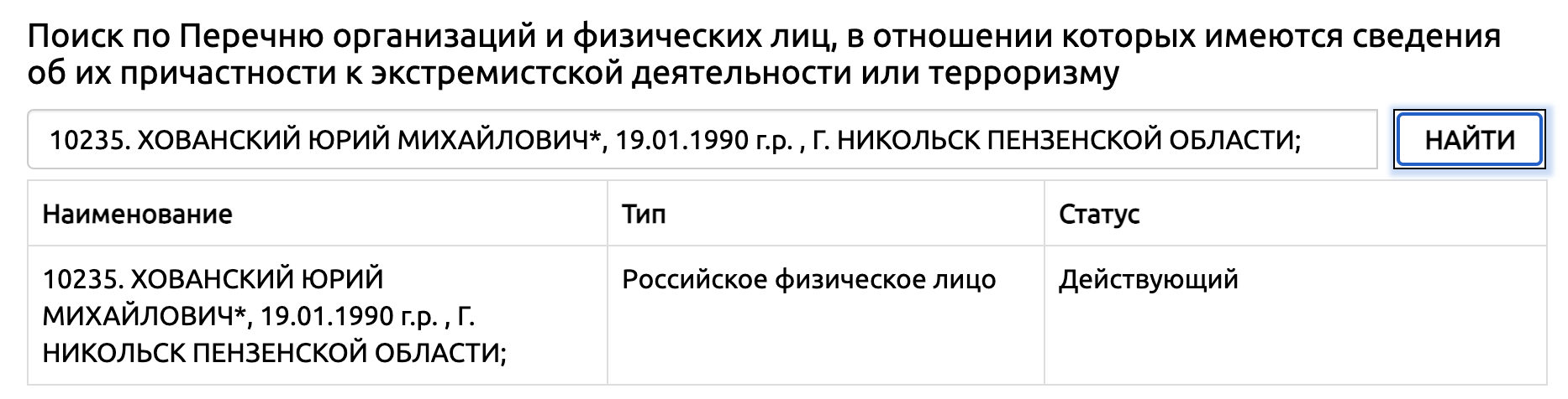 Блогера Юрия Хованского включили в реестр лиц, причастных к экстремизму или терроризму. Информация опубликована на сайте Росфинмониторинга.