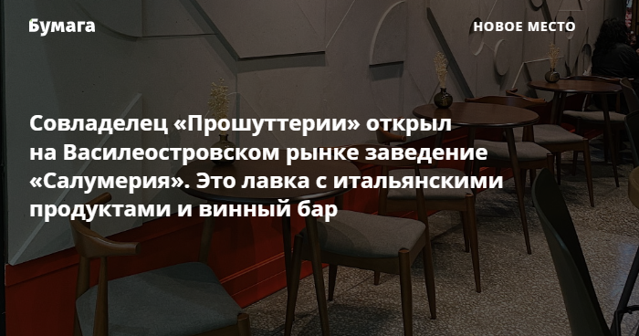 Совладелец «Прошуттерии» открыл на Василеостровском рынке заведение «Салумерия»