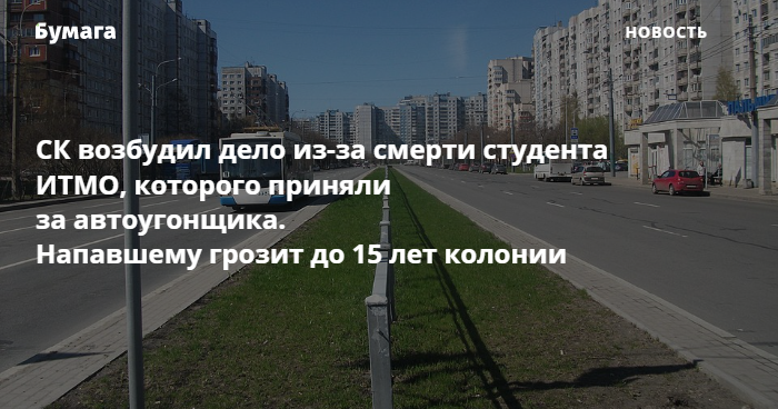 Отдел по Василеостровскому району СК по Петербургу возбудил уголовное дело из-за смерти 20-летнего студента ИТМО, который пытался спасти котенка и получил удар по задней части тела (так как его приняли за автоугонщика). Об этом сообщила пресс-служба Следственного комитета.