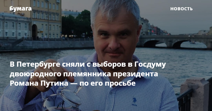 Территориальный избирком № 4 Петербурга отказал в регистрации в качестве кандидата в депутаты Госдумы двоюродному племяннику президента России Роману Путину. Об этом сообщает Zaks.ru с заседания.