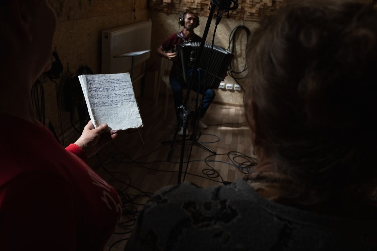 Звукозапись хора ветеранов «Капчи мылдык»Фото: Евгения Жуланова для ТД «Леша [руководитель хора] почему, думаете, приехал? — спрашивает Ксенофонтовна. — Он в нас верит. Представляете, взял и приехал?»