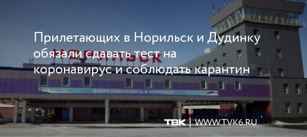 Прилетающих в Норильск и Дудинку обязали сдавать тест на коронавирус и соблюдать карантин