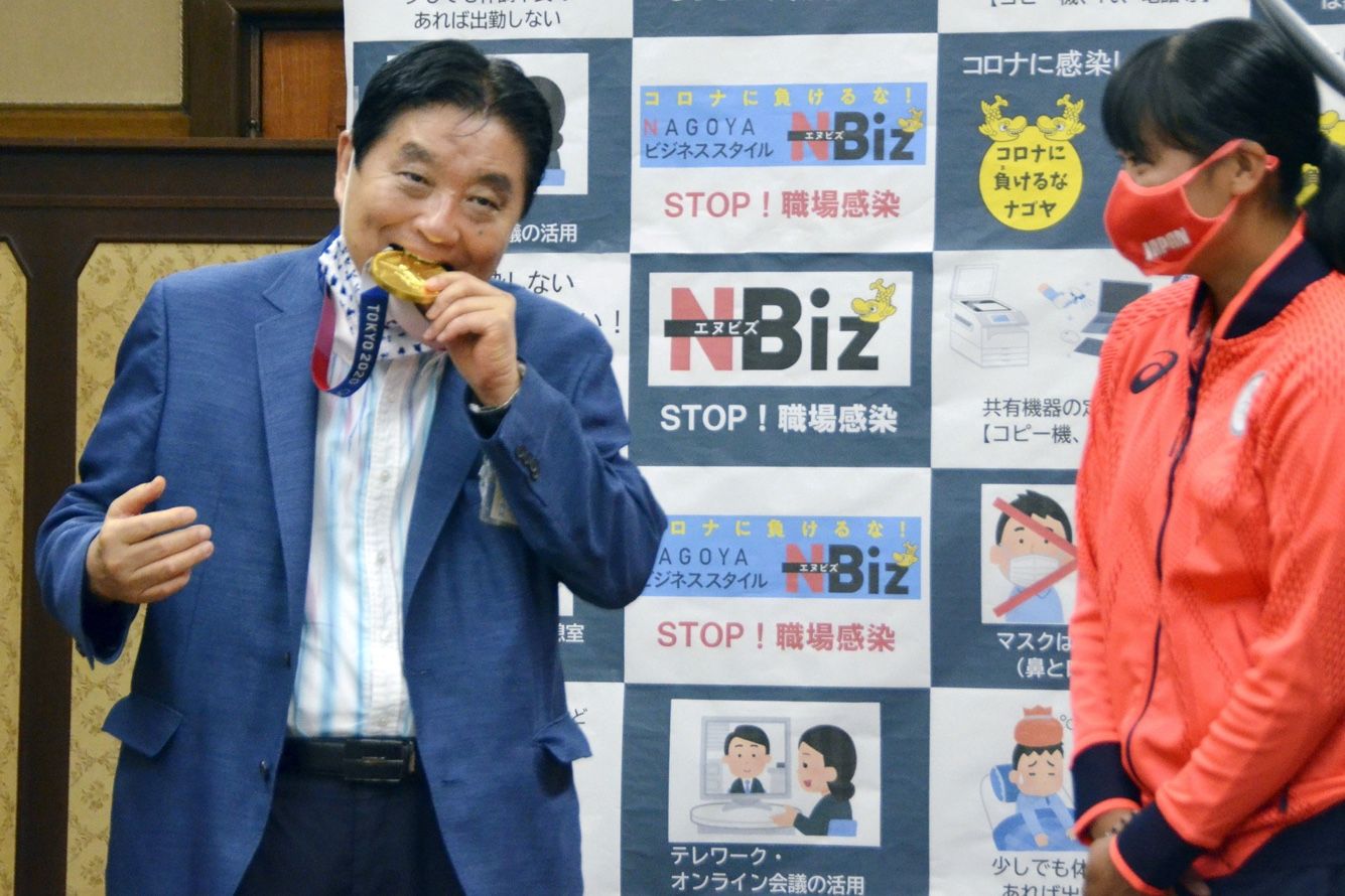 Японский мэр забыл про коронавирус и укусил медаль олимпийской чемпионки. Его завалили жалобами, а Олимпийский комитет пообещал заменить награду