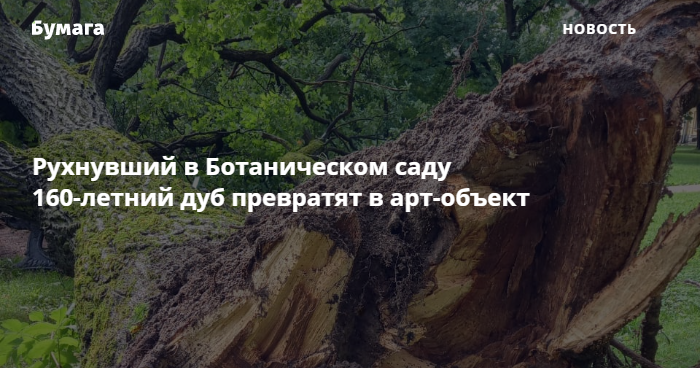 Спил 160-летнего дуба, который недавно рухнул в Ботаническом саду в Петербурге, превратят в арт-объект. Об этом рассказали в пресс-службе учреждения.