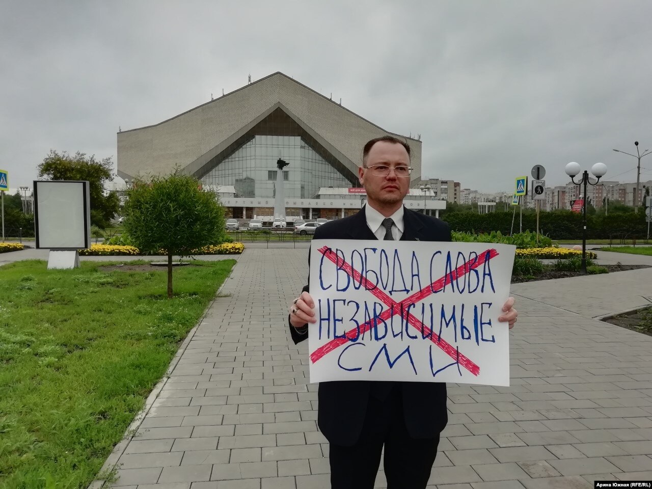 Одиночный пикет в поддержку независимых СМИ провел сегодня в Омске у спорткомплекса им.Блинова член Омского гражданского объединения Ричард Кинг. Активист сообщил корреспонденту Сибирь.Реалии, что не может оставаться в стороне, видя, что "в стране происходит тотальная зачистка медийного и правозащитного пространства".