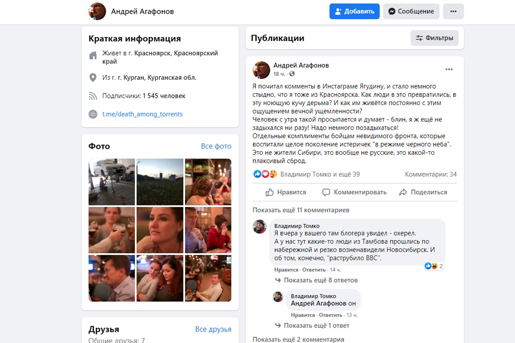 Первым на пост Агафонова обратил тг-канал «Борус». Тайга.инфо также успела заскринить пост советника губернатора, который был удален через несколько минут.
