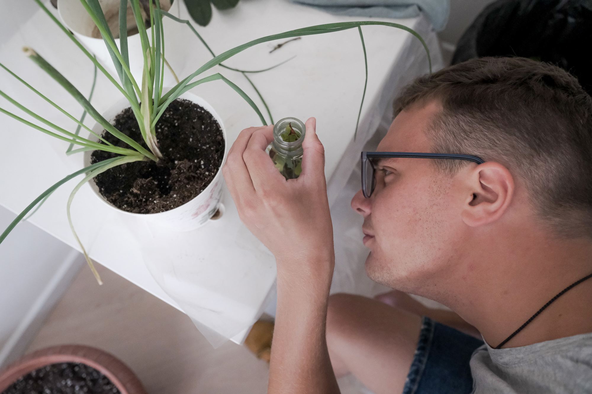 Даня ухаживает за цветамиФото: Юлия Скоробогатова для ТД Я прошу его нарисовать схему метро на салфетке. Он ловко и точно чертит ветки и параллельно объясняет, что уже был в Коммунарке, Саларьеве, хорошо знает Новую Москву.