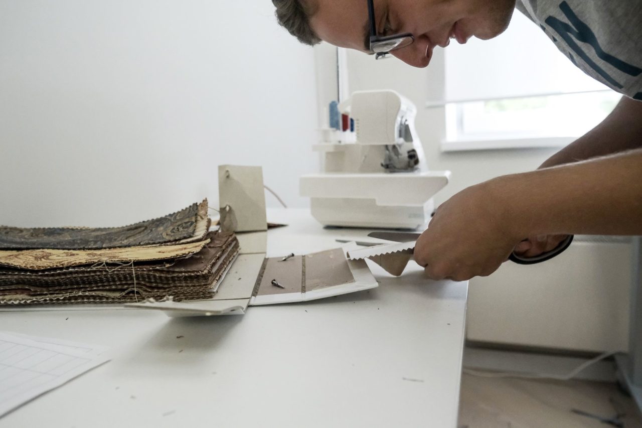 Даня вырезает ткань для будущих изделийФото: Юлия Скоробогатова для ТД Принято считать, что люди с аутизмом замкнуты и молчаливы. Но это не всегда так: расстройство аутистического спектра (РАС) — это целая группа различных состояний. Общее для всех — трудности в социальной коммуникации (людям с аутизмом сложно считывать свои и чужие эмоции) и нетипичные модели поведения.