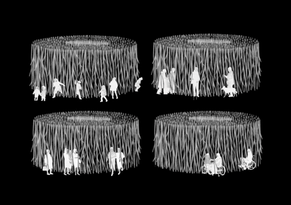 «Непроходимая чаща» — объект с подвижными стенами из свисающих ветвей. Авторы считают, что, помимо всем известных пяти органов чувств, каждый человек владеет внутренним чувством ориентирования в пространстве.