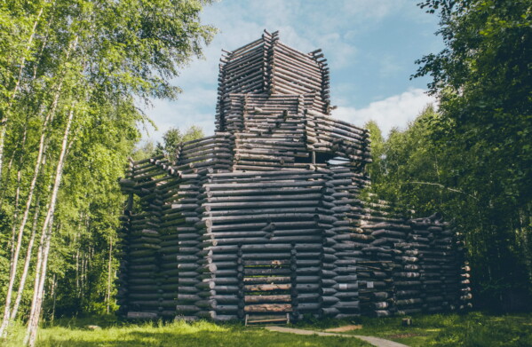 «Ленивый зиккурат» проектной группы «Поле-дизайн» — попытка вырастить объём из клетей-«кубиков», следуя только правилам рубки.