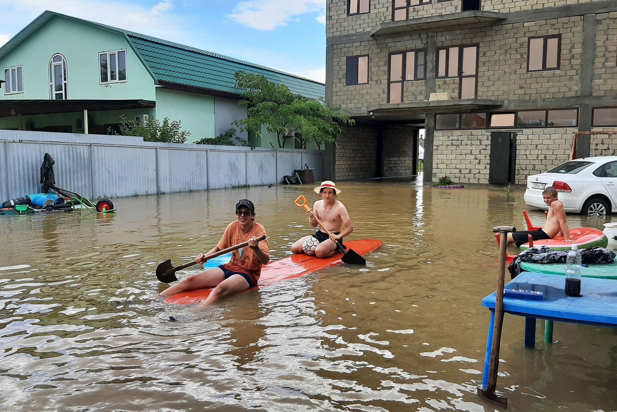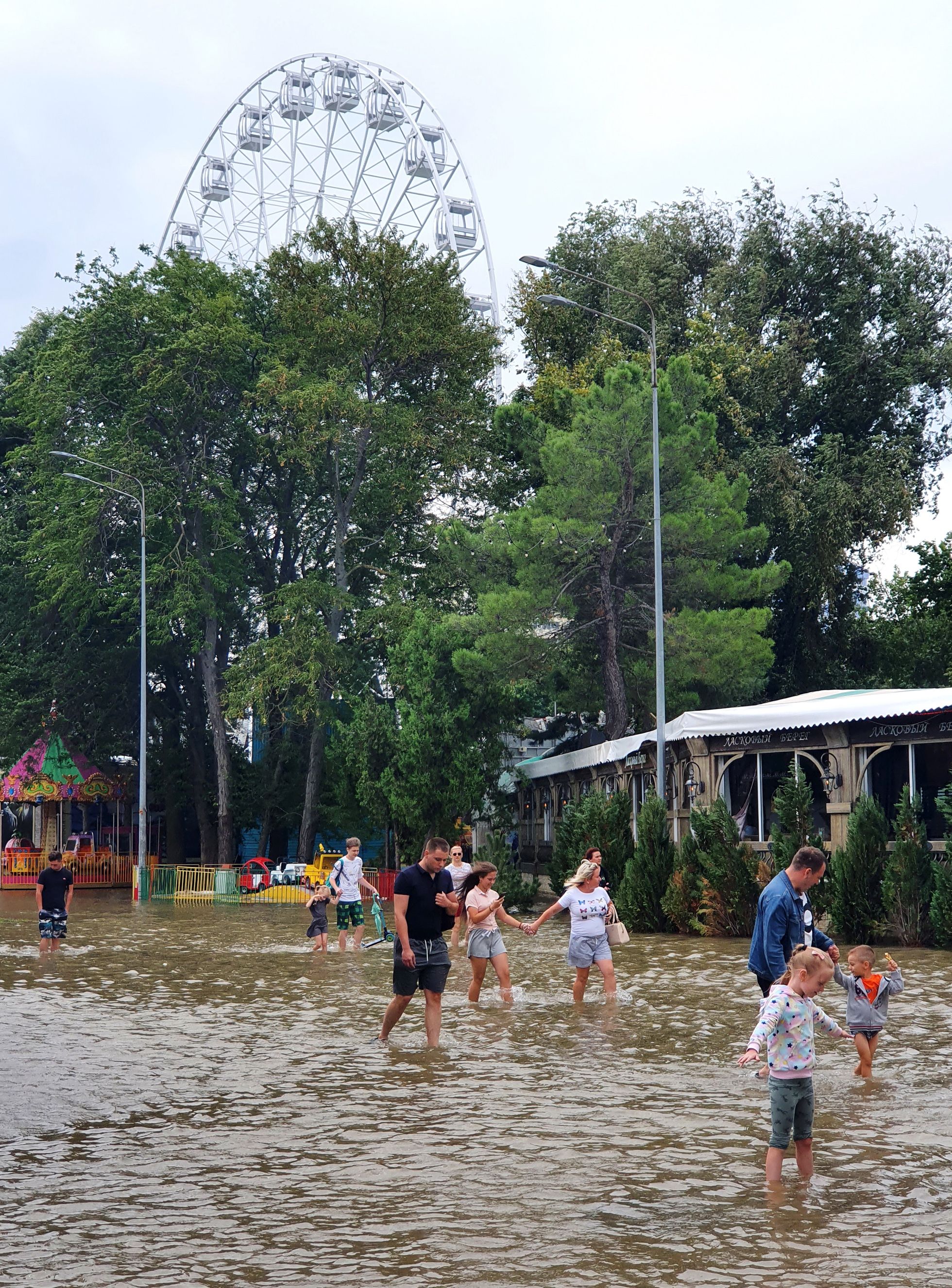В Краснодарском крае снова наводнение. Дома затоплены, пляжи уничтожены, людей приходится эвакуировать на надувных драконах