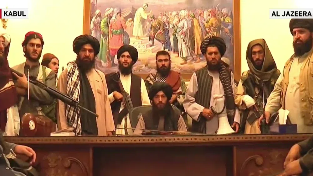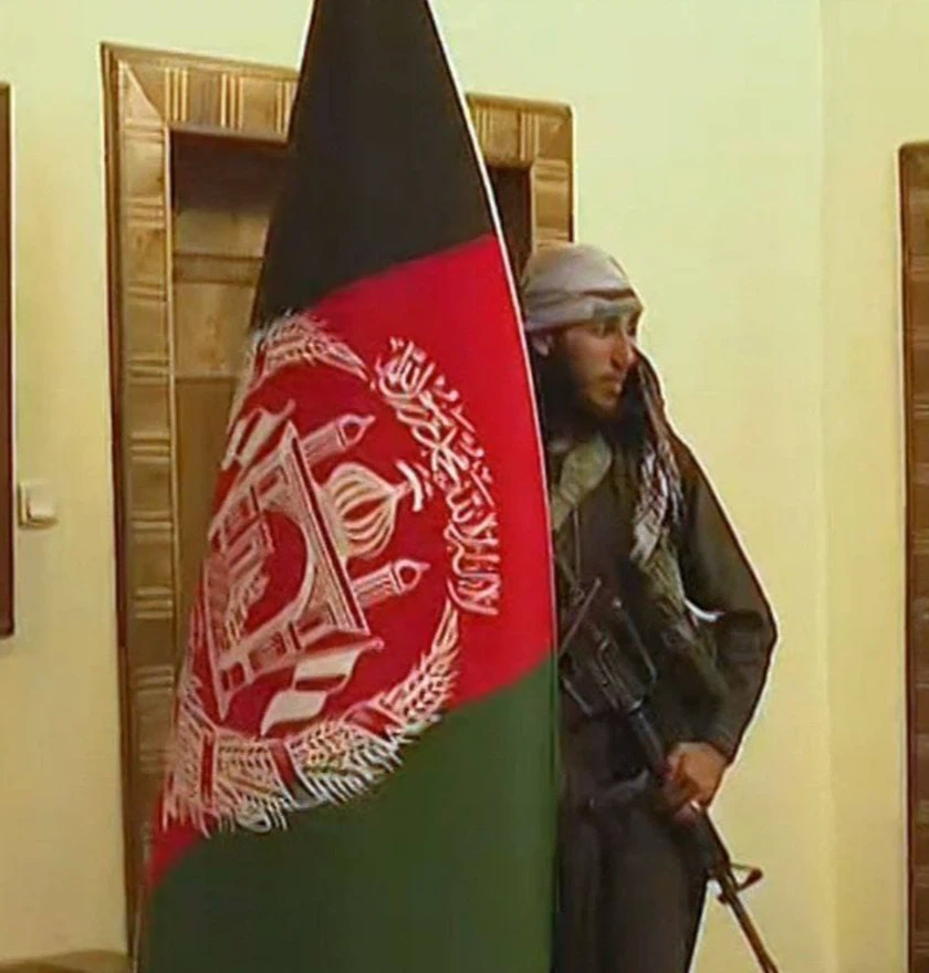 Телеканал Al Jazeera показал кадры трансляции из президентского дворца. На них талибы занимают кабинеты руководителей страны и выносят флаги Афганистана.