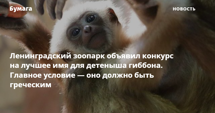 Ленинградский зоопарк проводит конкурс на имя для гиббона