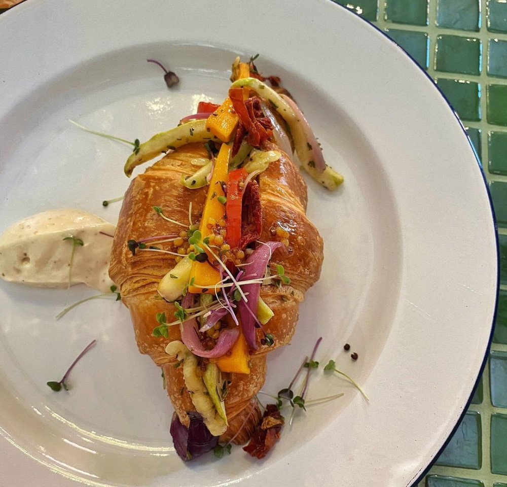 Кухню заведения возглавил шеф Евгений Волков, главное блюдо в меню — круассаны, которые делают на кокосовом масле. Их готовят со сладкими и сытными начинками: от тофу-паштета с вялеными томатами до шоколадной пасты с фисташками и клубникой.