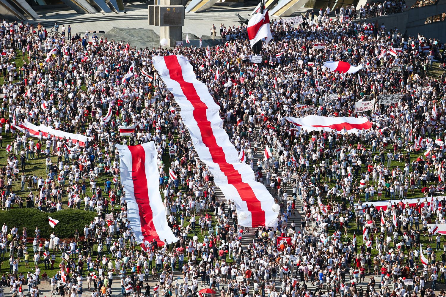 When the first Sunday march was announced, we didn’t expect to see anything too grandiose. But then my husband and I realized the metro was full of people with white ribbons. We got off and started walking. All around, people were joyful, shouting, “Long Live Belarus!” Suddenly there was an ocean of people — wearing white and waving our national flag.
