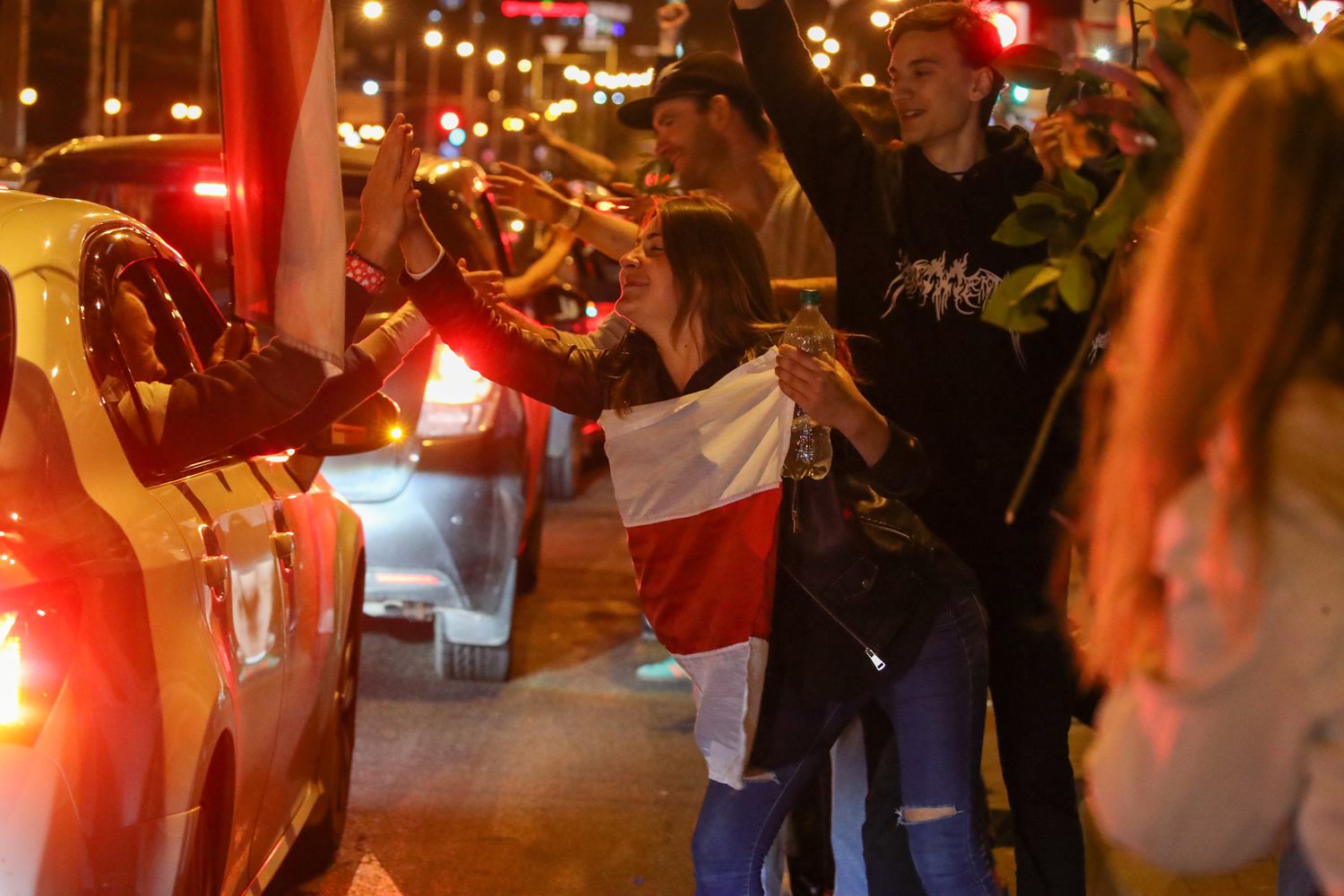 Everyone was waiting for the results. The Internet had been shut off earlier that day, but somebody managed to get it using a VPN. We started hearing news like “In Pinsk, the riot police dropped their shields,” and the whole crowd cried, “Hooray!” We stood and waited for the same thing to happen in Minsk. Someone approached the riot officers and asked them to join the side of the people. Then they started shooting, they started pushing, but there were a lot of us. There was no fear, only euphoria.