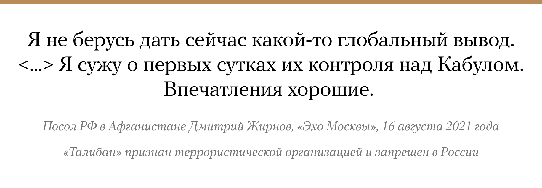 Посол России — о ситуации в Кабуле после прихода талибов. Цитата
