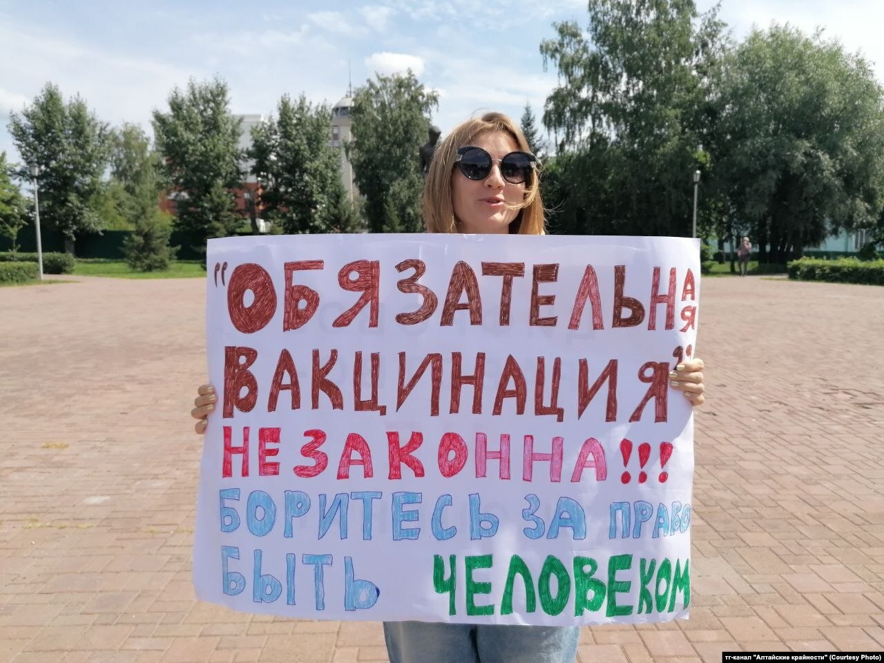 - 14 августа одиночный пикет против принудительной вакцинации прошел в Новосибирске.