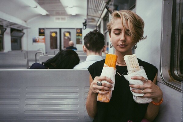 На нескольких похожих кадрах девушка в электричке держит две шаурмы: в обычном и сырном лаваше. Спонтанно сделанные фотографии неожиданно разошлись в сети — за шесть лет их использовали в качестве иллюстраций к десяткам статей и рекламных постов.