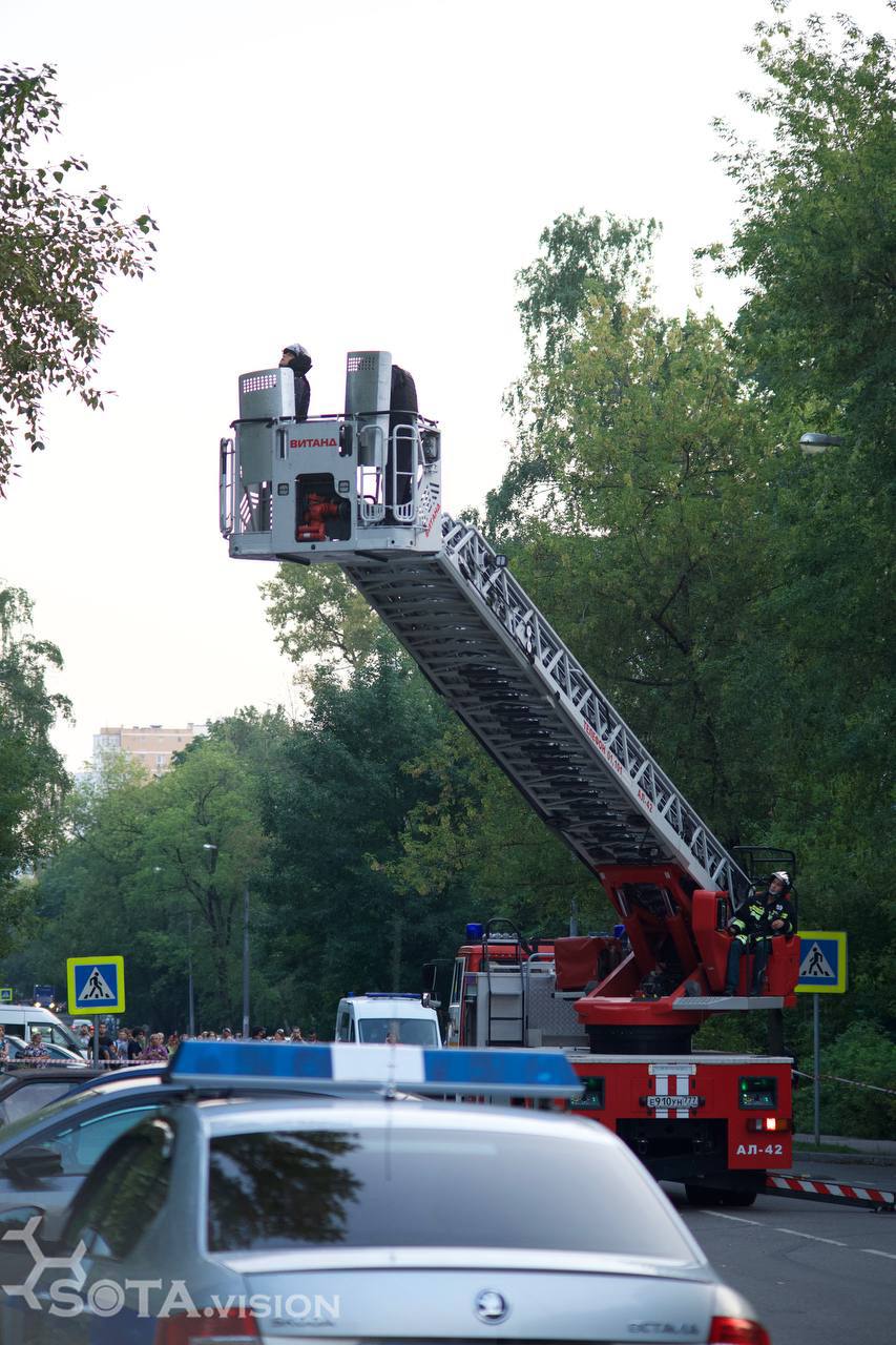 После них по лестнице поднимаются полицейские переговорщики, которые предлагают Кузьминой спуститься, о чем она тут же рассказывает по телефону оператору трансляции: «Мое дело было остановить стройку, они ее остановили — на сколько, я не знаю. Общественный порядок я нарушать не хочу, понятное дело. Чтобы меня арестовали, я тоже не хочу. Здесь сидеть сутками мне тоже не очень интересно, хотя я могу это сделать — ну, вот они мне предложили безопасно спуститься, чтобы вся полиция убралась. Я, конечно, не верю этому, но не знаю, не знаю…».