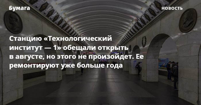 Станцию «Технологический институт — 1» обещали открыть в августе, но этого не произойдет. Ее ремонтируют уже больше года