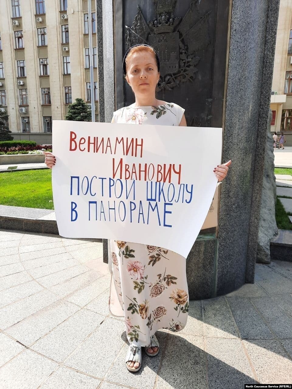 В Краснодаре активистка вышла на одиночный пикет с требованием построить больше школ