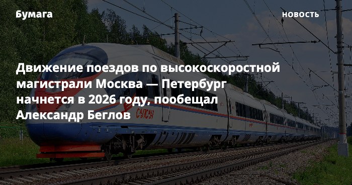 Движение высокоскоростных поездов по маршруту Москва — Петербург планируется начать в 2026 году, заявил губернатор Петербурга Александр Беглов после встречи с руководством «РЖД».
