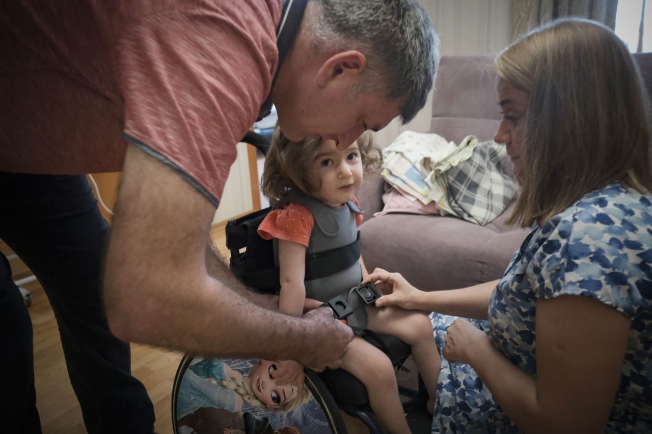 С рождением дочери Заурбек полностью перестроил свою жизнь: ради хорошего лечения Бадоевы переехали из Севастополя в Москву, папа торгует строительными материалами — все деньги уходят на то, чтобы поднять Зарину. А у нее расписание как у космонавта: от подъема до отбоя занятия, вертикализаторы, гимнастика, аппараты и препараты — чем больше вложишь сейчас, тем больше шансов спустя годы увидеть Зарину на своих ногах.