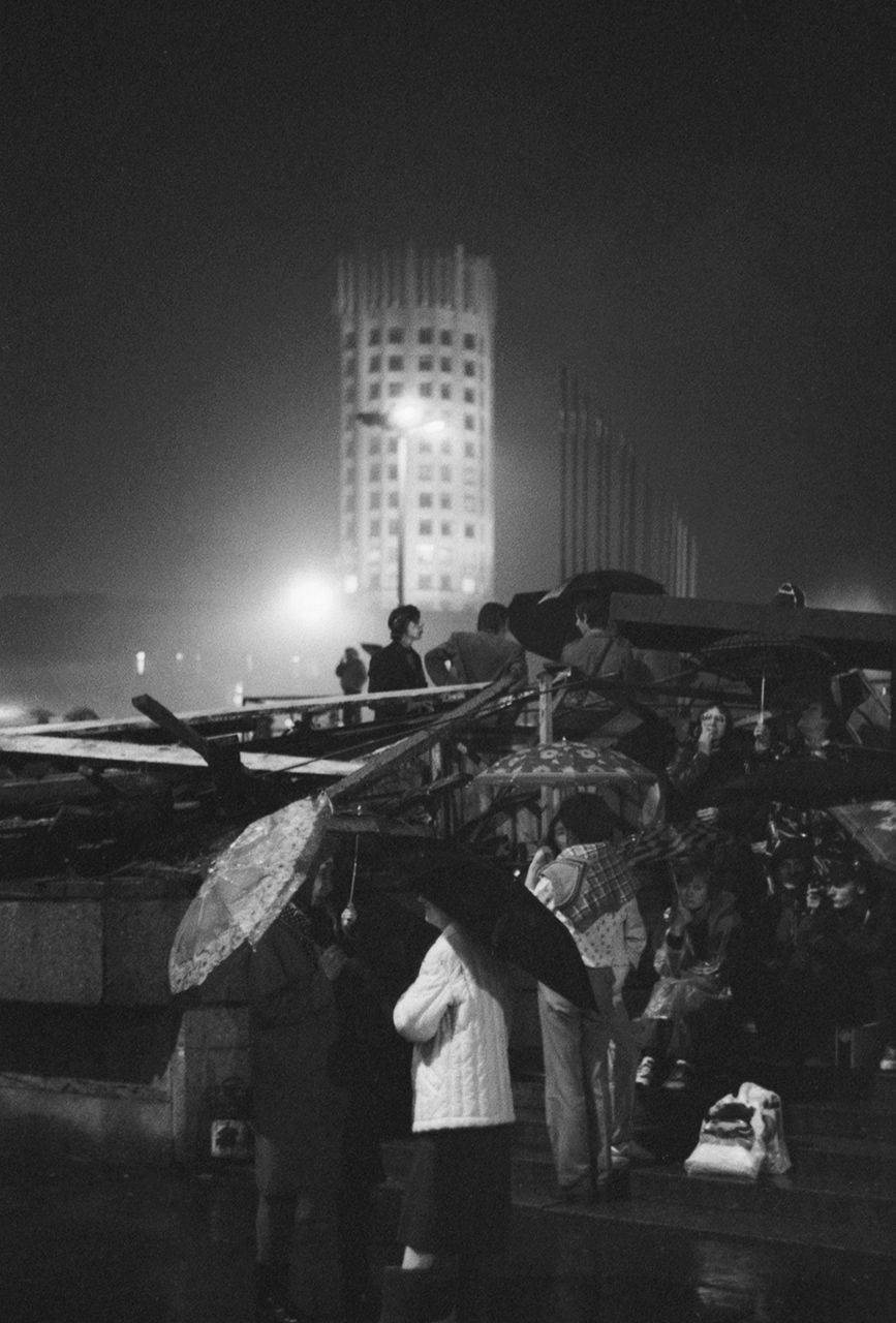 На полпути кто-то начал истерически кричать: «Танки! Танки идут!» Цепочка людей растерянно остановились. Тот же голос продолжал кричать: «Надо уходить наверх, к американскому посольству! Там не тронут!» Кто-то развернулся, кто-то побежал, но большинство людей, постояв минут пять и не обнаружив танков на горизонте, продолжили идти.