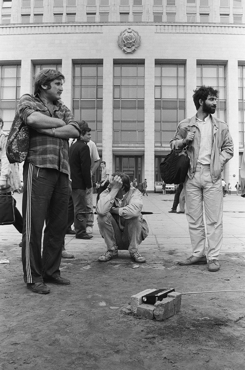 О Белом доме нам рассказал на следующий день знакомый с биофака, он же вызвался съездить и проверить обстановку. Вернувшись ближе к вечеру, сообщил, что Белый дом — это «такая здоровая дура рядом с книжкой СЭВа», что вокруг него уже построены баррикады из подручного мусора и что сегодня там был огромный митинг против ГКЧП. «Народу — ****** [очень много]», — подытожил наш разведчик.