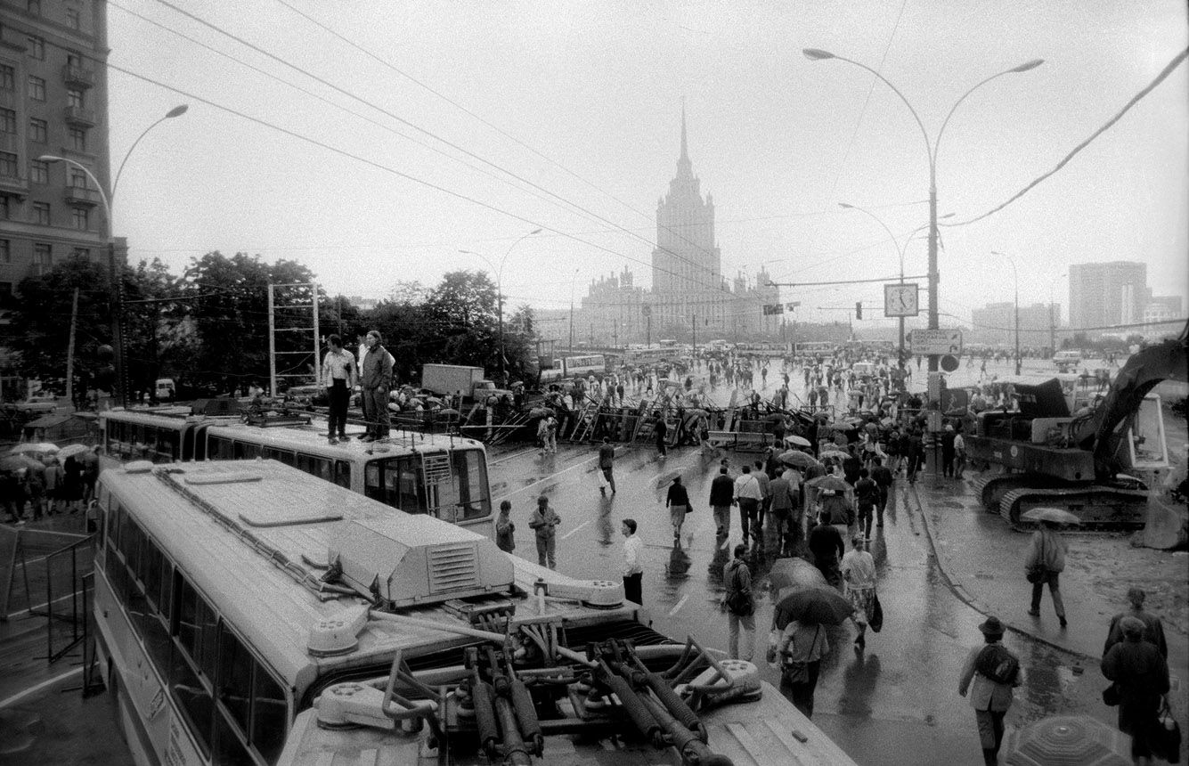 Одна из самых первых баррикад, которую построили вечером 19 августа. Задача была — перегородить проезд к Белому дому для танков. Мы когда стояли у Белого дома, видели людей, которые прошли Афганистан, им было по 26-28 лет — с боевым опытом люди. Была такая мысль, что если всерьез нас пойдут штурмовать, сметут по-любому. Но если мы начнем стрелять в ответ, прольется кровь и нас поубивают. А если мы, не имея оружия, стоим — просто на осознании собственной правоты, — наши позиции сильнее. Мы граждане этой страны, мы в большинстве и мы считаем, что должно быть так.