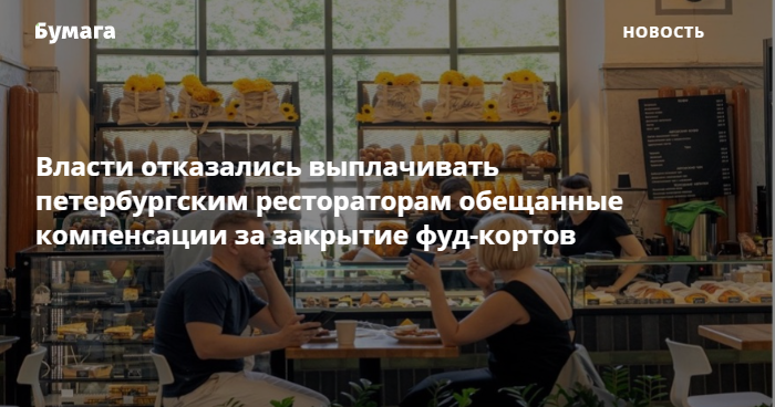 Власти отказались выплачивать петербургским рестораторам обещанные компенсации за закрытие фуд-кортов. Обновлено