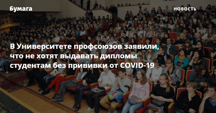 Ректор СПбГУП Александр Запесоцкий рассказал, что не хочет выдавать дипломы студентам, которые отказываются от вакцинации, не имея для этого медицинских оснований. Его слова опубликованы на официальном сайте вуза.