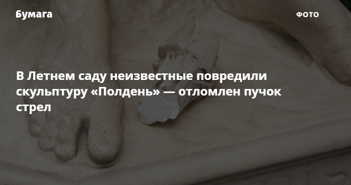В Летнем саду неизвестные отломили пучок стрел от скульптуры «Полдень». Виновников не удалось задержать. Об этом сообщили в паблике «Сады Русского музея».