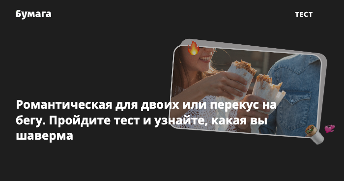 Шальная шаверма после бар-хоппинга? Или деловая? А может быть, шаверма-неформал? Сыграйте в нашу игру и узнайте, какая вы шаверма.