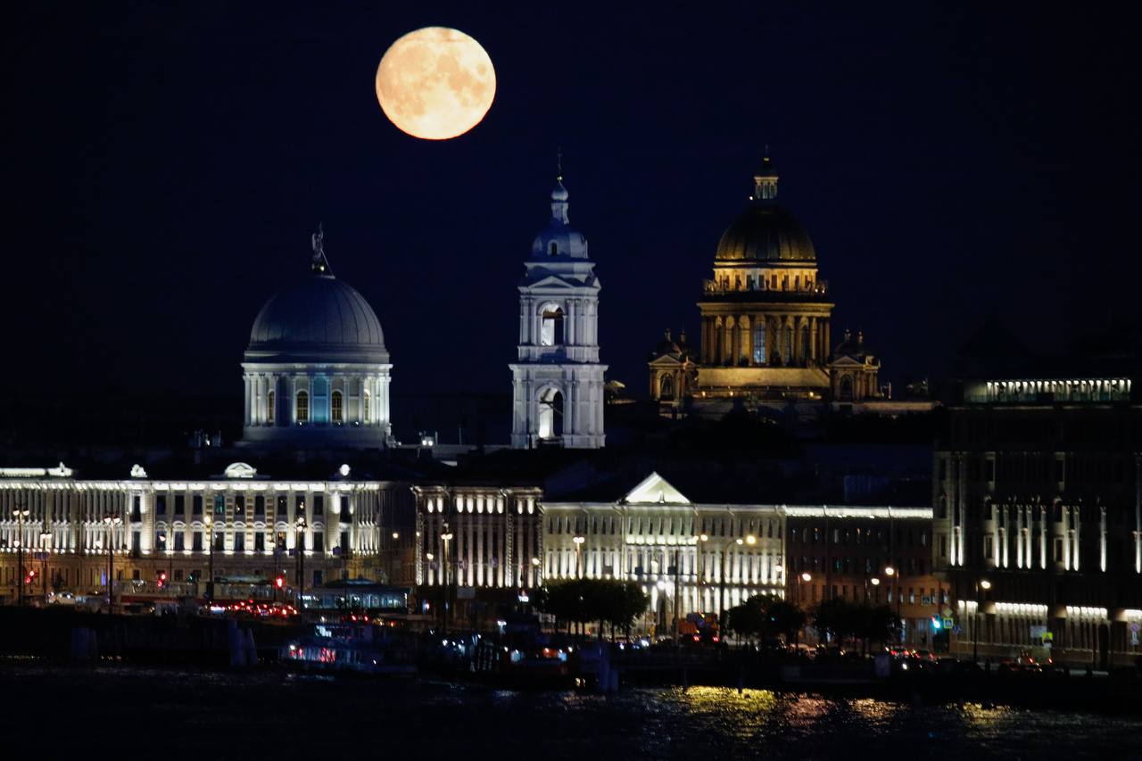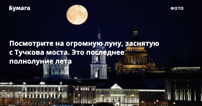 В ночь на 22 августа петербуржцы могли наблюдать последнее полнолуние лета 2021 года. Посмотрите на огромную луну, сфотографированную с моста Бетанкура.