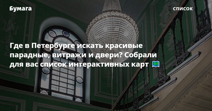 Как разнообразить прогулки по Петербургу? Изучите интерактивные карты и полюбуйтесь на красивые двери, парадные и витражи. Бонус: сократить дорогу поможет карта проходных дворов, правда, она охватывает только Петроградский район.
