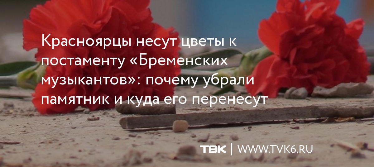 Красноярцы несут цветы к постаменту «Бременских музыкантов»: почему убрали памятник и куда его перенесут